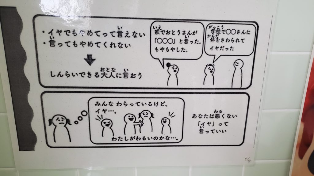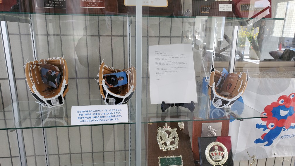 大阪市の小学校・中学校24校の教室に壁掛け扇風機を300台取付 私たちの時代と変わりました、各教室にエアコン2台・壁掛け扇風機4台 小学校に行くと玄関に大谷翔平のグローブがありました 小学校のトイレをお借りするとこの張り紙が、教育?
