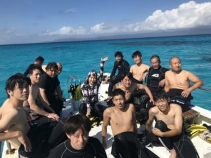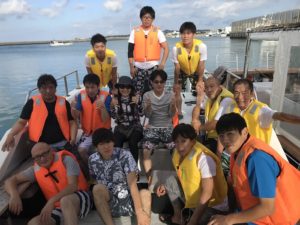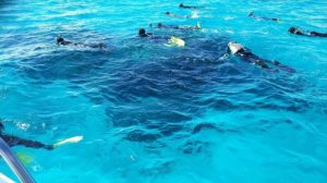みんなと船に乗ってシュノーケリング