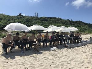 お昼です、皆で白いビーチお弁当