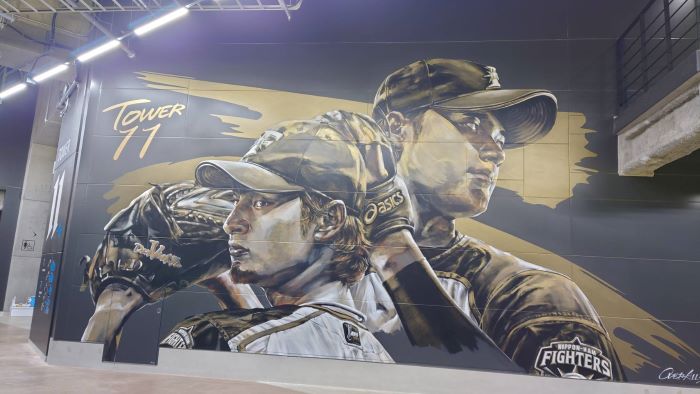 - ダルビッシュと大谷翔平の絵がお出迎え