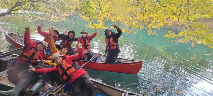 - 支笏湖の出口から千歳川に透明度の高い水が美しかったです